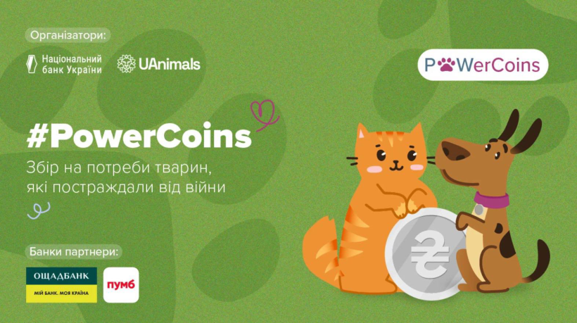 Національний банк України та UAnimals розпочали щорічну благодійну акцію зі збору монет «#PowerCoins» для допомоги тваринам, які постраждали від війни.
